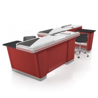 Сдвоенный кассовый бокс с накопителями. Без транспортёров. Длина тандема 420 см. Рабочая поверхность: гладкая нержавейка или «лён».
