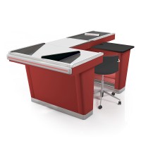 Кассовый бокс с накопителем. С транспортером 90 см. С укороченной средней частью. Длина бокса 210 см. Рабочая поверхность: гладкая нержавейка или «лён».